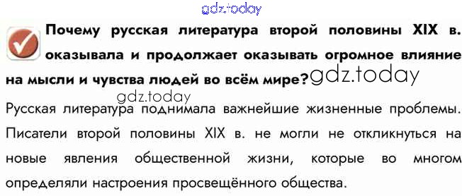 На страницах сайта gdz.today вы найдете учебный и вспомогательный материал, направленный на улучшения знаний школьной программы. ГДЗ - онлайн мир знаний Вопрос в начале параграфа Культурное пространство империи во второй половине XIX в.: русская литература 1 Учебнику по Истории России для 9 класса Арсентьев, Данилов  Просвещение  2016