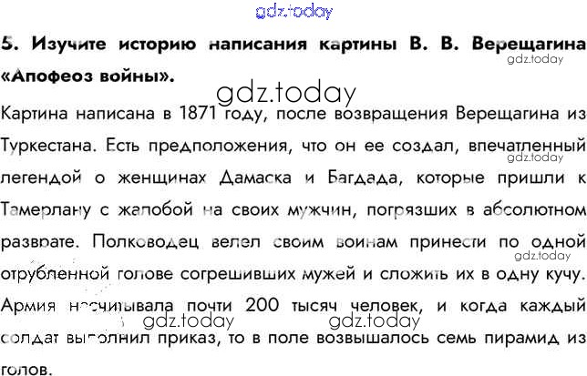 На страницах сайта gdz.today вы найдете учебный и вспомогательный материал, направленный на улучшения знаний школьной программы. ГДЗ - онлайн мир знаний Думаем, сравниваем, размышляем Культурное пространство империи во второй половине XIX в.:  художественная культура народов России 5 Учебнику по Истории России для 9 класса Арсентьев, Данилов  Просвещение  2016