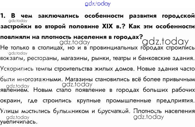 На страницах сайта gdz.today вы найдете учебный и вспомогательный материал, направленный на улучшения знаний школьной программы. ГДЗ - онлайн мир знаний Вопросы и задания Повседневная жизнь разных слоев населеия в XIX в. 1 Учебнику по Истории России для 9 класса Арсентьев, Данилов  Просвещение  2016