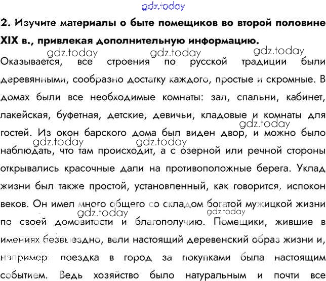На страницах сайта gdz.today вы найдете учебный и вспомогательный материал, направленный на улучшения знаний школьной программы. ГДЗ - онлайн мир знаний Думаем, сравниваем, размышляем Повседневная жизнь разных слоев населеия в XIX в. 2 Учебнику по Истории России для 9 класса Арсентьев, Данилов  Просвещение  2016