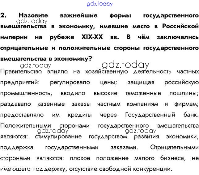 На страницах сайта gdz.today вы найдете учебный и вспомогательный материал, направленный на улучшения знаний школьной программы. ГДЗ - онлайн мир знаний Вопросы и задания § 27. Социально-экономическое развитие страны на рубеже XIX-XX вв. 2 Учебнику по Истории России для 9 класса Арсентьев, Данилов  Просвещение  2016