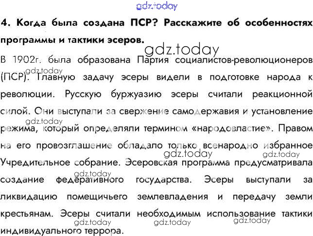 На страницах сайта gdz.today вы найдете учебный и вспомогательный материал, направленный на улучшения знаний школьной программы. ГДЗ - онлайн мир знаний Вопросы и задания § 28. Николай II: начало правления. Политическое развитие страны в 1894-1904 гг. 4 Учебнику по Истории России для 9 класса Арсентьев, Данилов  Просвещение  2016