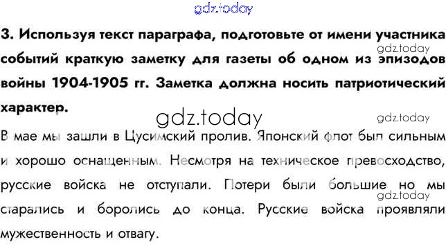 На страницах сайта gdz.today вы найдете учебный и вспомогательный материал, направленный на улучшения знаний школьной программы. ГДЗ - онлайн мир знаний Думаем, сравниваем, размышляем § 29. Внешняя политика Николая II. Русско-японская война 1904-1905 гг. 3 Учебнику по Истории России для 9 класса Арсентьев, Данилов  Просвещение  2016