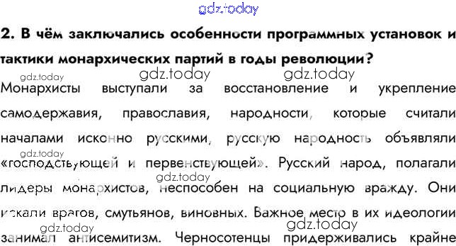 На страницах сайта gdz.today вы найдете учебный и вспомогательный материал, направленный на улучшения знаний школьной программы. ГДЗ - онлайн мир знаний Вопросы и задания § 30. Первая российская революция и политические реформы 1905-1907 гг. 2 Учебнику по Истории России для 9 класса Арсентьев, Данилов  Просвещение  2016
