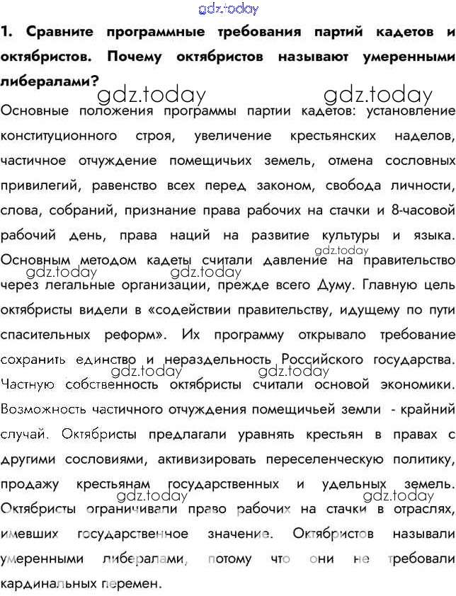 На страницах сайта gdz.today вы найдете учебный и вспомогательный материал, направленный на улучшения знаний школьной программы. ГДЗ - онлайн мир знаний Думаем, сравниваем, размышляем § 30. Первая российская революция и политические реформы 1905-1907 гг. 1 Учебнику по Истории России для 9 класса Арсентьев, Данилов  Просвещение  2016