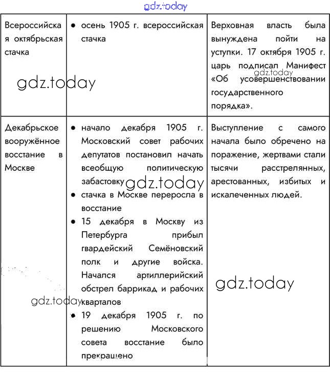 На страницах сайта gdz.today вы найдете учебный и вспомогательный материал, направленный на улучшения знаний школьной программы. ГДЗ - онлайн мир знаний Думаем, сравниваем, размышляем § 30. Первая российская революция и политические реформы 1905-1907 гг. 3 Учебнику по Истории России для 9 класса Арсентьев, Данилов  Просвещение  2016