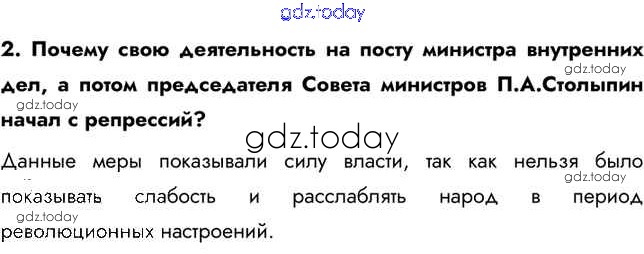 На страницах сайта gdz.today вы найдете учебный и вспомогательный материал, направленный на улучшения знаний школьной программы. ГДЗ - онлайн мир знаний Думаем, сравниваем, размышляем § 31. Социально-экономические реформы П. А. Столыпина 2 Учебнику по Истории России для 9 класса Арсентьев, Данилов  Просвещение  2016