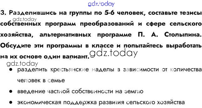 На страницах сайта gdz.today вы найдете учебный и вспомогательный материал, направленный на улучшения знаний школьной программы. ГДЗ - онлайн мир знаний Думаем, сравниваем, размышляем § 31. Социально-экономические реформы П. А. Столыпина 3 Учебнику по Истории России для 9 класса Арсентьев, Данилов  Просвещение  2016
