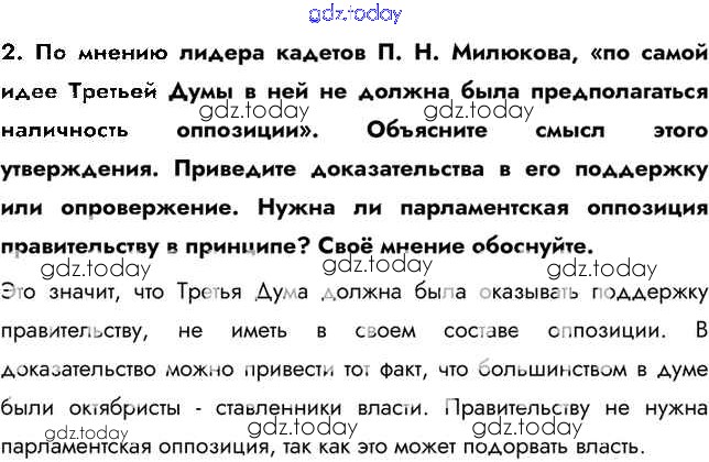 На страницах сайта gdz.today вы найдете учебный и вспомогательный материал, направленный на улучшения знаний школьной программы. ГДЗ - онлайн мир знаний Думаем, сравниваем, размышляем § 32. Политическое развитие страны в 1907-1914 гг. 2 Учебнику по Истории России для 9 класса Арсентьев, Данилов  Просвещение  2016