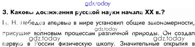 На страницах сайта gdz.today вы найдете учебный и вспомогательный материал, направленный на улучшения знаний школьной программы. ГДЗ - онлайн мир знаний Вопросы и задания Серебряный век русской культуры. 3 Учебнику по Истории России для 9 класса Арсентьев, Данилов  Просвещение  2016