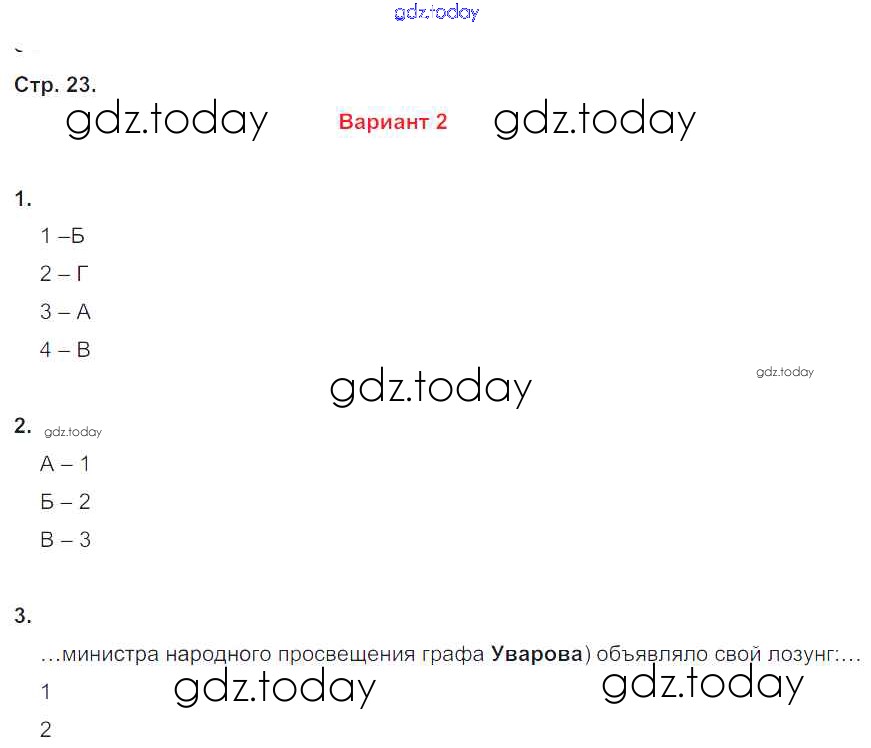 На страницах сайта gdz.today вы найдете учебный и вспомогательный материал, направленный на улучшения знаний школьной программы. ГДЗ - онлайн мир знаний Страницы (решение) 23 Контрольным работам по Истории России для 9 класса Артасов Просвещение УМК 2017