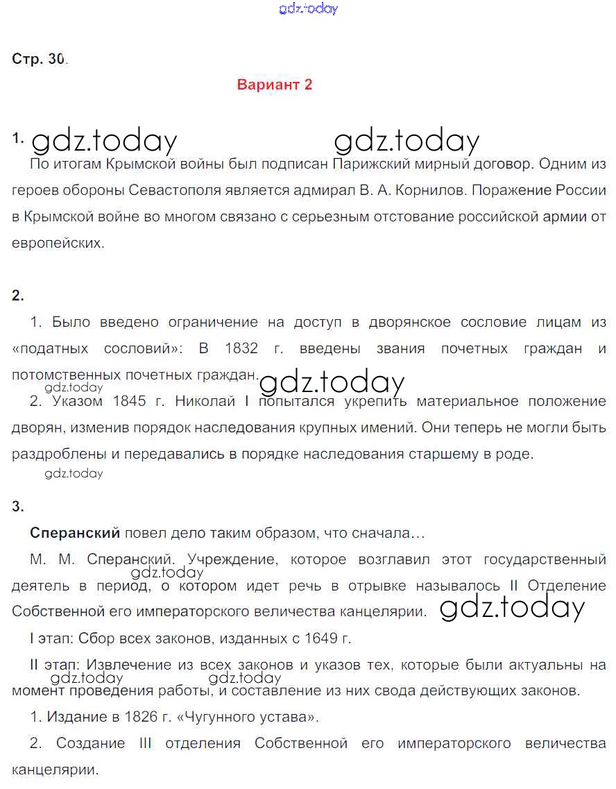 На страницах сайта gdz.today вы найдете учебный и вспомогательный материал, направленный на улучшения знаний школьной программы. ГДЗ - онлайн мир знаний Страницы (решение) 30 Контрольным работам по Истории России для 9 класса Артасов Просвещение УМК 2017