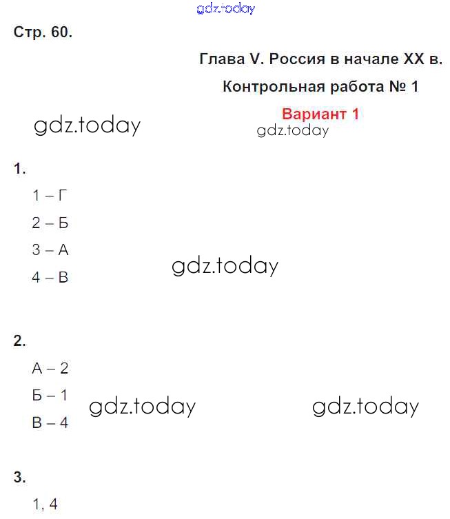 Ответы к Страницы (решение) 60 Контрольным работам по Истории России для 9 класса Артасов Просвещение УМК 2017