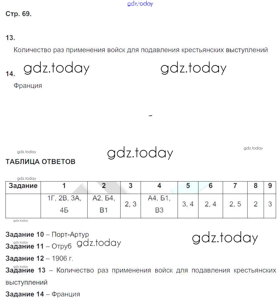 На страницах сайта gdz.today вы найдете учебный и вспомогательный материал, направленный на улучшения знаний школьной программы. ГДЗ - онлайн мир знаний Страницы (решение) 69 Контрольным работам по Истории России для 9 класса Артасов Просвещение УМК 2017
