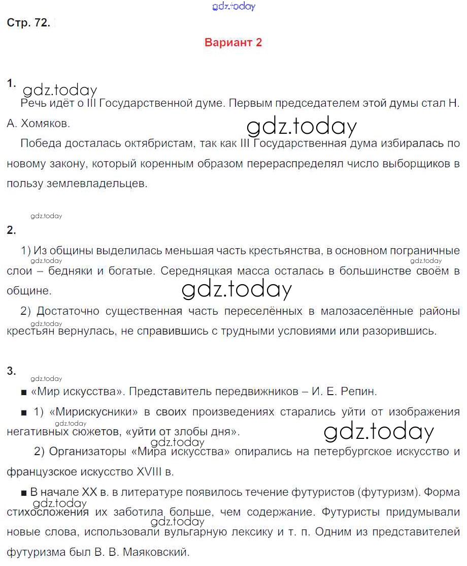 На страницах сайта gdz.today вы найдете учебный и вспомогательный материал, направленный на улучшения знаний школьной программы. ГДЗ - онлайн мир знаний Страницы (решение) 72 Контрольным работам по Истории России для 9 класса Артасов Просвещение УМК 2017