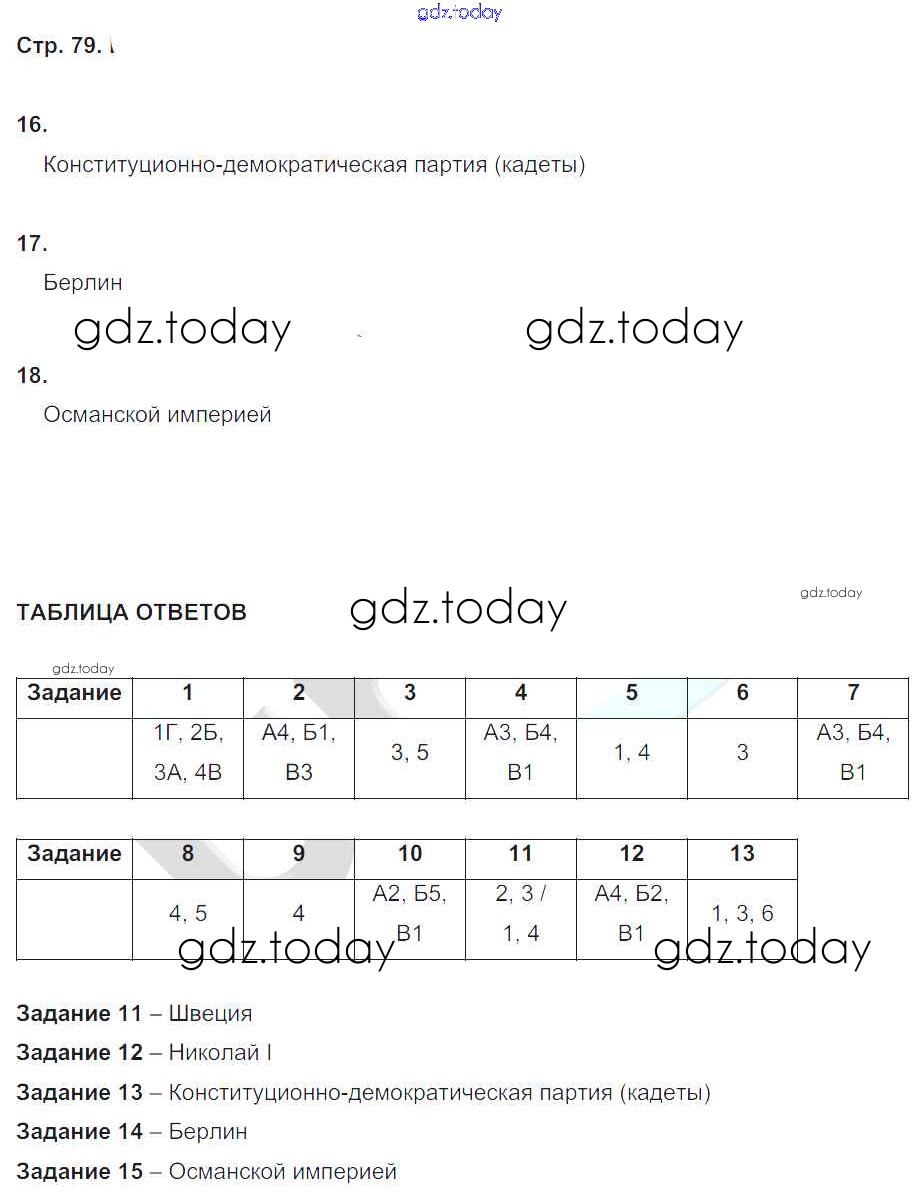 На страницах сайта gdz.today вы найдете учебный и вспомогательный материал, направленный на улучшения знаний школьной программы. ГДЗ - онлайн мир знаний Страницы (решение) 79 Контрольным работам по Истории России для 9 класса Артасов Просвещение УМК 2017