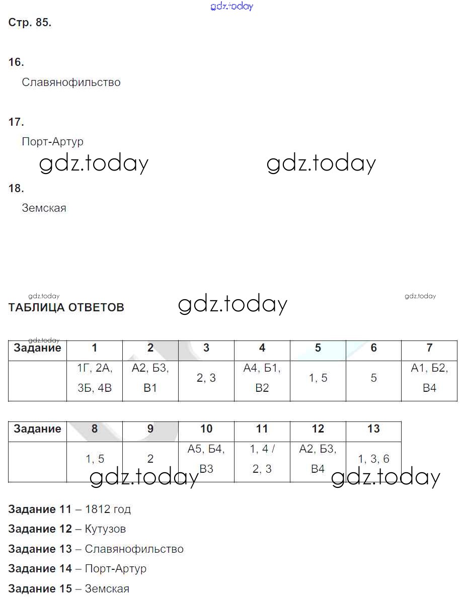На страницах сайта gdz.today вы найдете учебный и вспомогательный материал, направленный на улучшения знаний школьной программы. ГДЗ - онлайн мир знаний Страницы (решение) 85 Контрольным работам по Истории России для 9 класса Артасов Просвещение УМК 2017