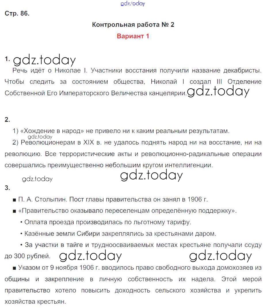На страницах сайта gdz.today вы найдете учебный и вспомогательный материал, направленный на улучшения знаний школьной программы. ГДЗ - онлайн мир знаний Страницы (решение) 86 Контрольным работам по Истории России для 9 класса Артасов Просвещение УМК 2017