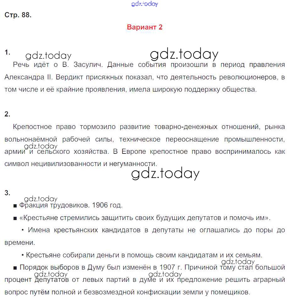 На страницах сайта gdz.today вы найдете учебный и вспомогательный материал, направленный на улучшения знаний школьной программы. ГДЗ - онлайн мир знаний Страницы (решение) 88 Контрольным работам по Истории России для 9 класса Артасов Просвещение УМК 2017