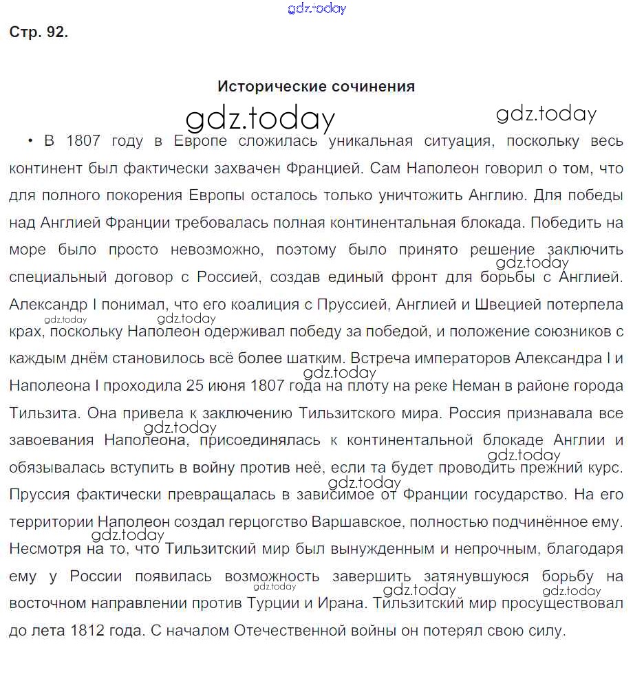 На страницах сайта gdz.today вы найдете учебный и вспомогательный материал, направленный на улучшения знаний школьной программы. ГДЗ - онлайн мир знаний Страницы (решение) 92 Контрольным работам по Истории России для 9 класса Артасов Просвещение УМК 2017