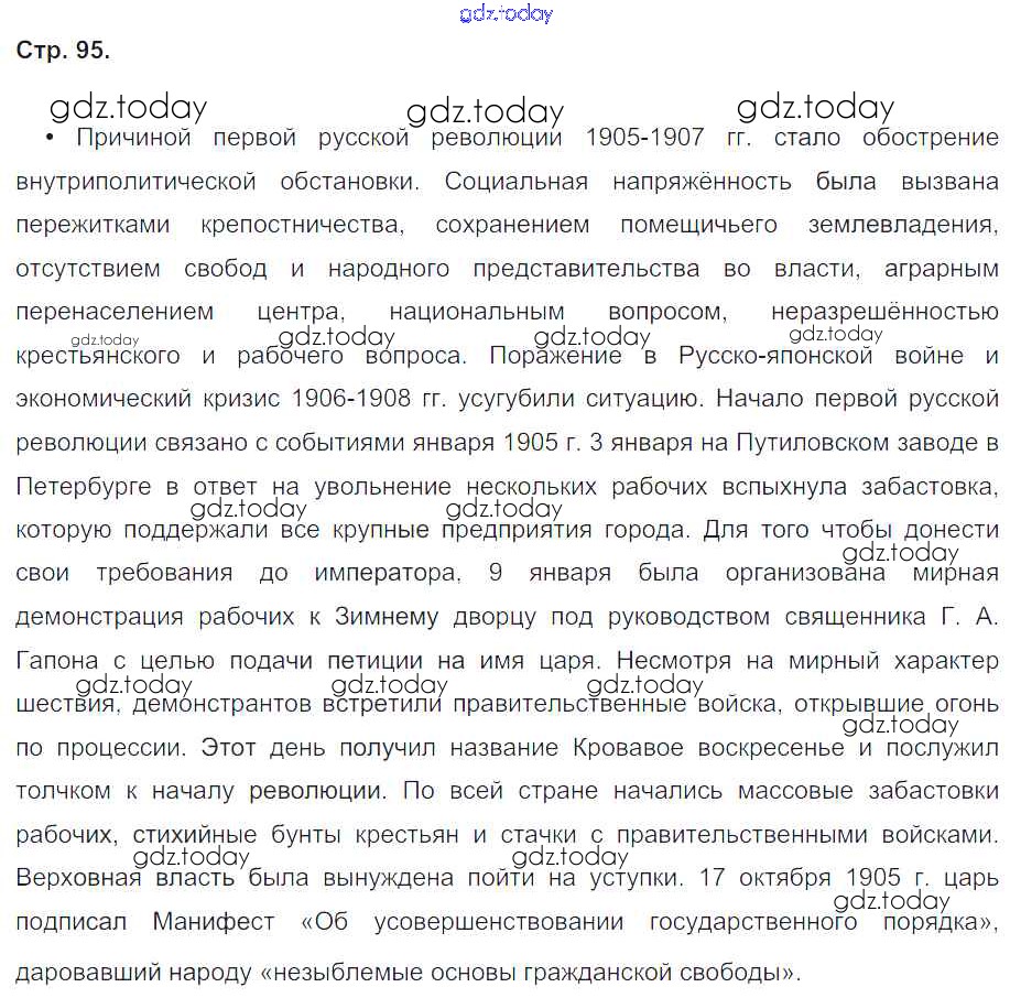 На страницах сайта gdz.today вы найдете учебный и вспомогательный материал, направленный на улучшения знаний школьной программы. ГДЗ - онлайн мир знаний Страницы (решение) 95 Контрольным работам по Истории России для 9 класса Артасов Просвещение УМК 2017