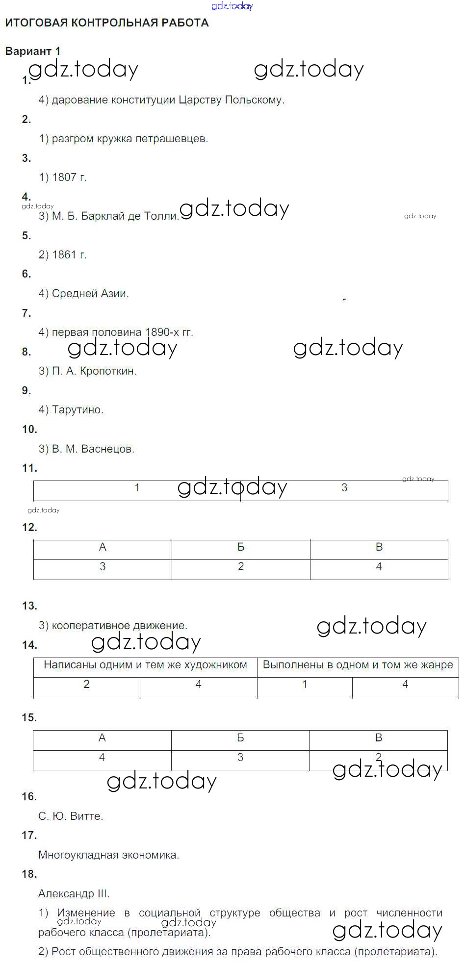 На страницах сайта gdz.today вы найдете учебный и вспомогательный материал, направленный на улучшения знаний школьной программы. ГДЗ - онлайн мир знаний Итоговая контрольная работа (решение) Вариант 1 Тематическому контролю по Истории России для 9 класса Артасов, Войцик Национальное образование 2019