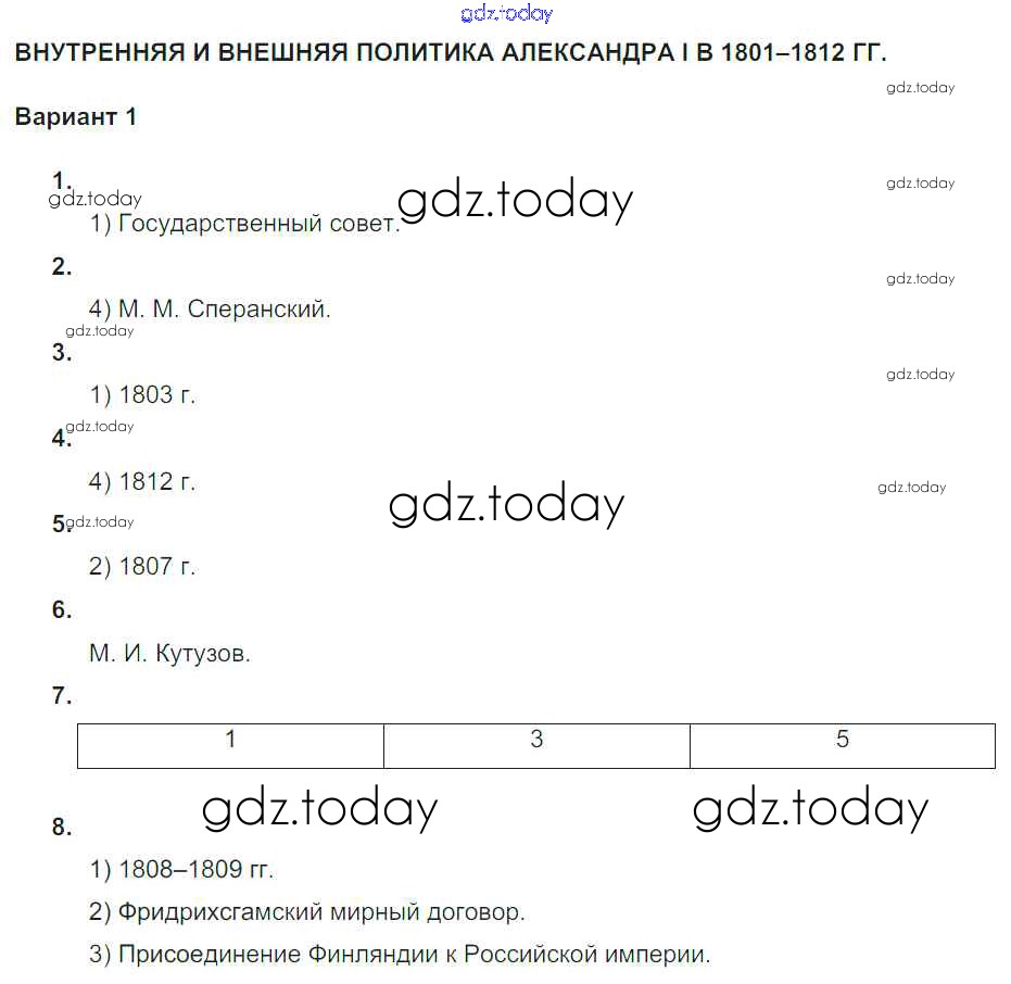На страницах сайта gdz.today вы найдете учебный и вспомогательный материал, направленный на улучшения знаний школьной программы. ГДЗ - онлайн мир знаний СР-1. Варианты Российская империя в первой половине XIX века (решение) 1 Тематическому контролю по Истории России для 9 класса Артасов, Войцик Национальное образование 2019