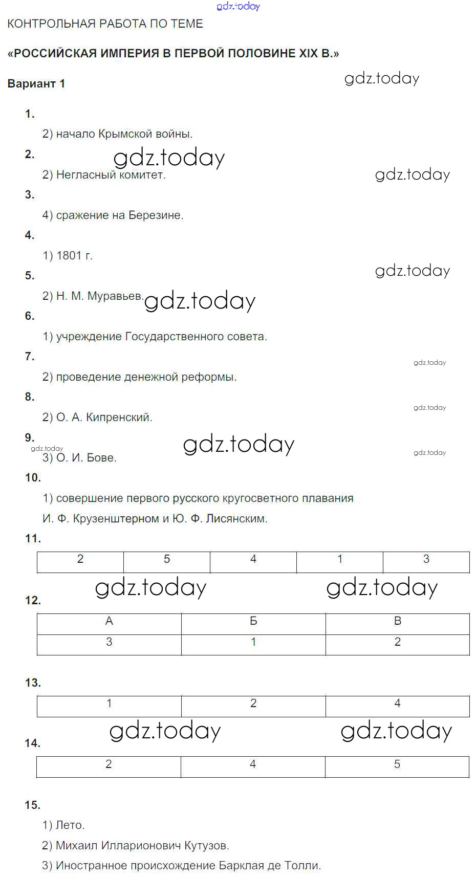 Ответы к КР. Варианты Российская империя в первой половине XIX века (решение) 1 Тематическому контролю по Истории России для 9 класса Артасов, Войцик Национальное образование 2019