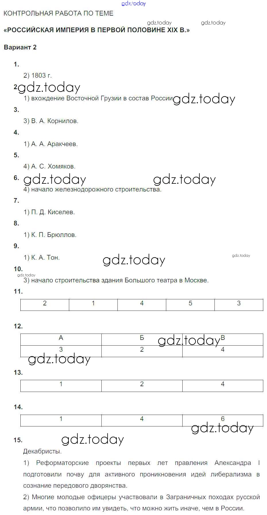 Ответы к КР. Варианты Российская империя в первой половине XIX века (решение) 2 Тематическому контролю по Истории России для 9 класса Артасов, Войцик Национальное образование 2019