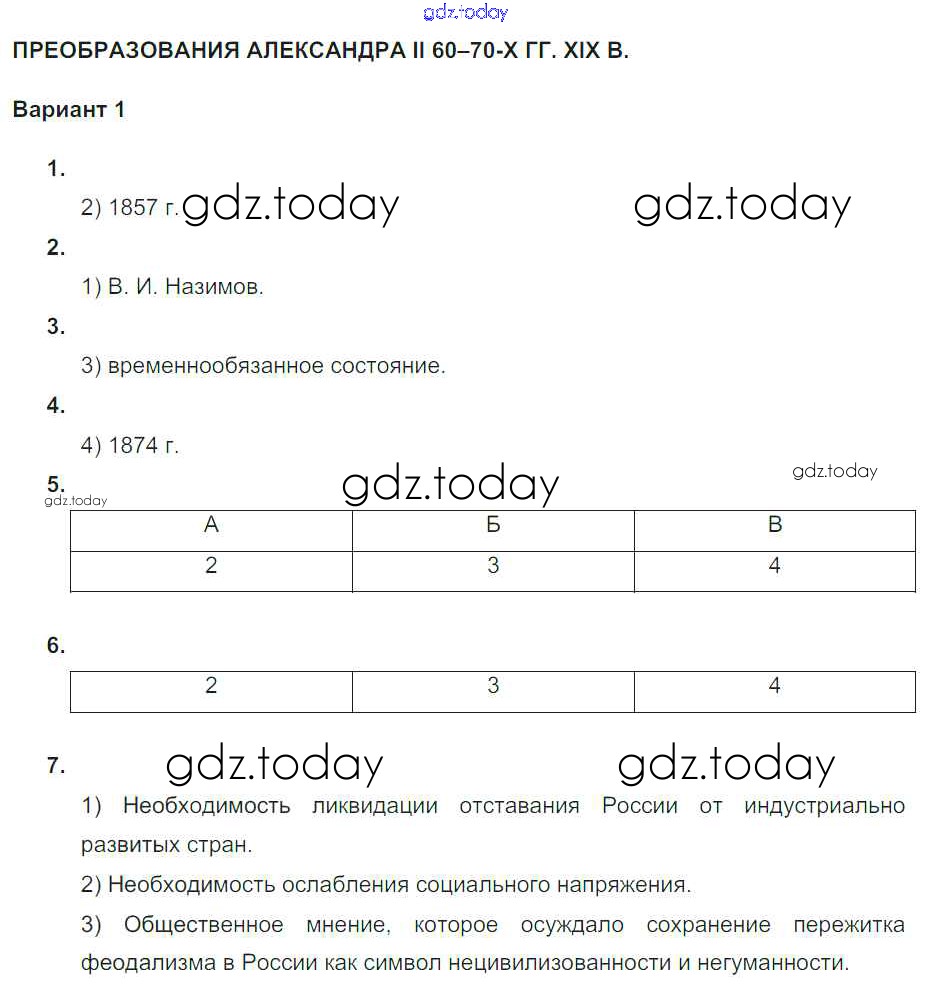 На страницах сайта gdz.today вы найдете учебный и вспомогательный материал, направленный на улучшения знаний школьной программы. ГДЗ - онлайн мир знаний СР-1. Варианты Российская империя во второй половине XIX в (решение) 1 Тематическому контролю по Истории России для 9 класса Артасов, Войцик Национальное образование 2019