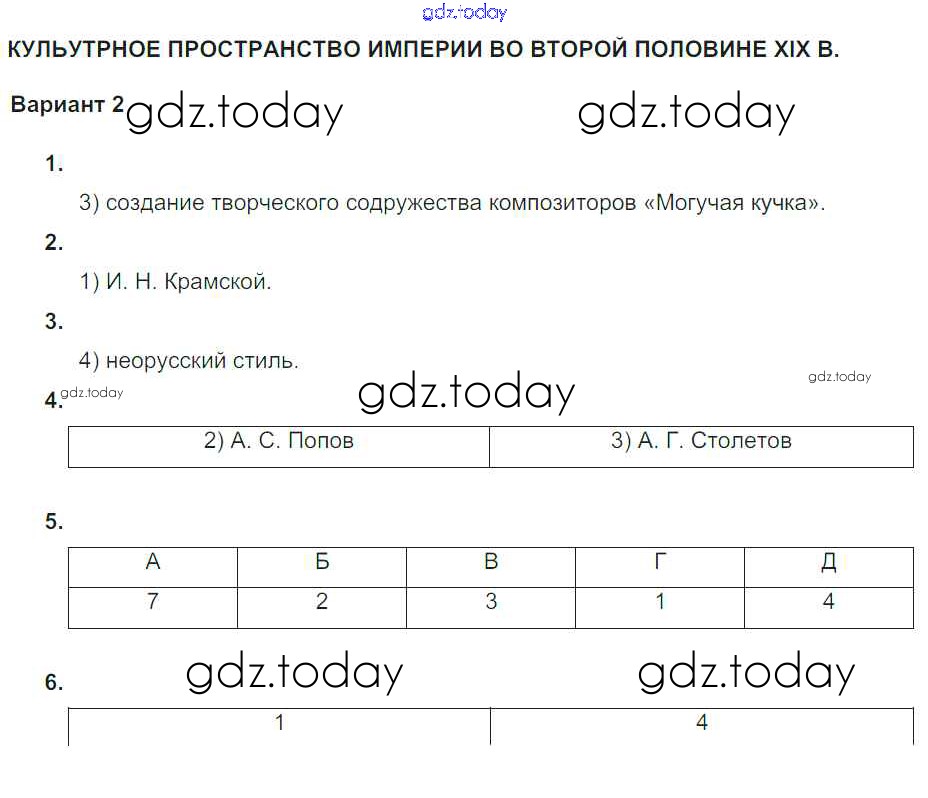 На страницах сайта gdz.today вы найдете учебный и вспомогательный материал, направленный на улучшения знаний школьной программы. ГДЗ - онлайн мир знаний СР-5. Варианты Российская империя во второй половине XIX в (решение) 2 Тематическому контролю по Истории России для 9 класса Артасов, Войцик Национальное образование 2019