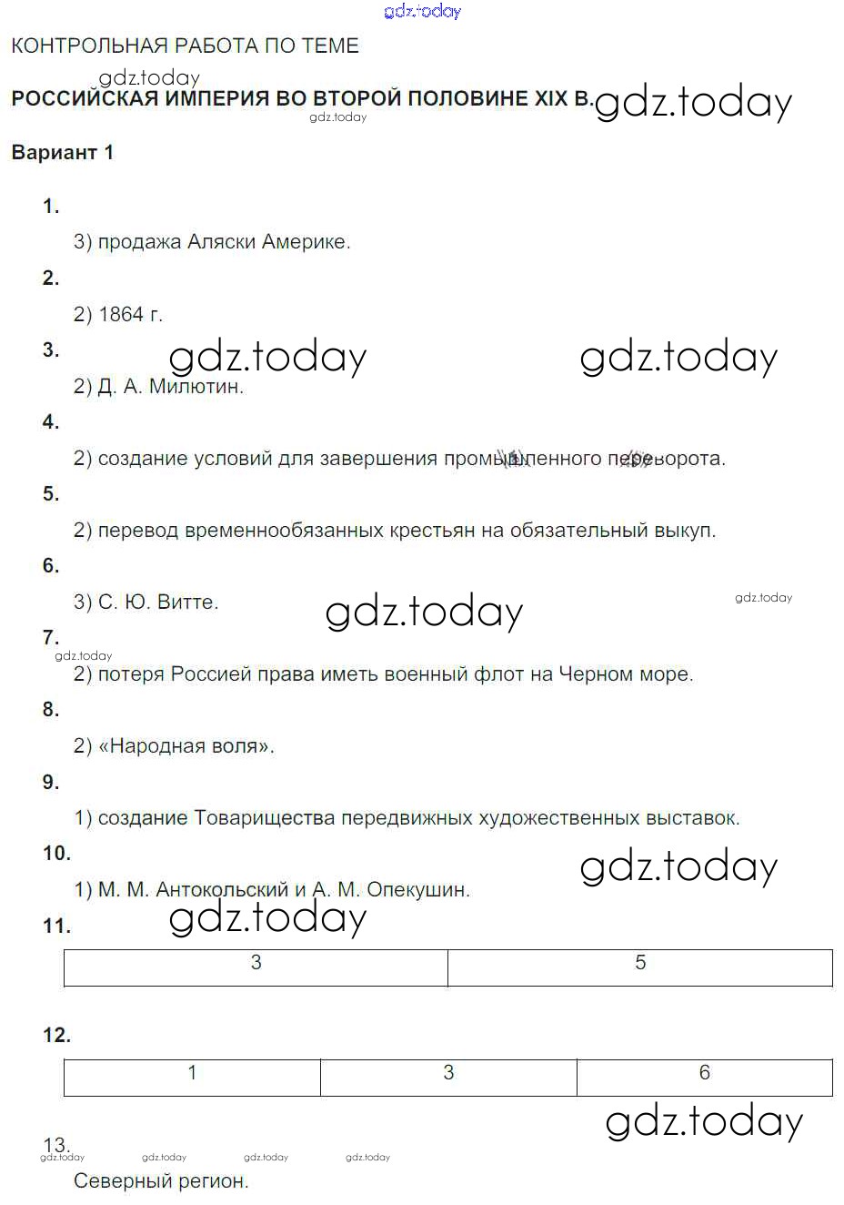 Ответы к КР. Варианты Российская империя во второй половине XIX в (решение) 1 Тематическому контролю по Истории России для 9 класса Артасов, Войцик Национальное образование 2019