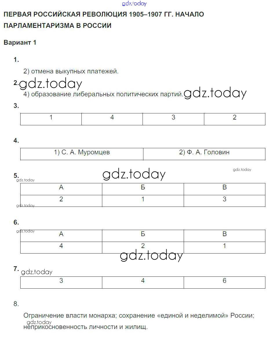 Ответы к СР-3. Варианты Россия в 1894–1914 гг. (решение) 1 Тематическому контролю по Истории России для 9 класса Артасов, Войцик Национальное образование 2019