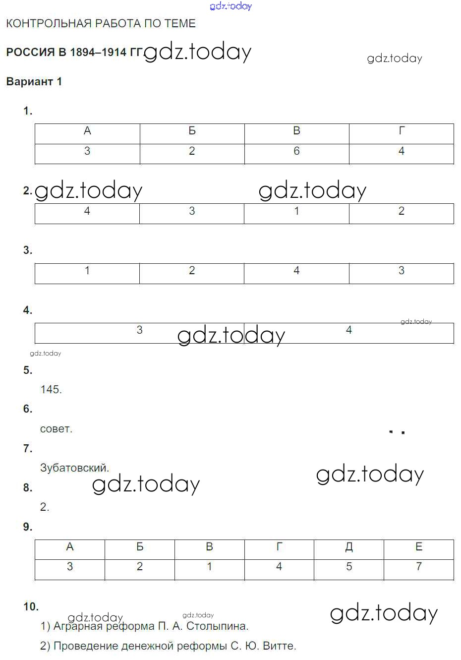 На страницах сайта gdz.today вы найдете учебный и вспомогательный материал, направленный на улучшения знаний школьной программы. ГДЗ - онлайн мир знаний КР. Варианты Россия в 1894–1914 гг. (решение) 1 Тематическому контролю по Истории России для 9 класса Артасов, Войцик Национальное образование 2019