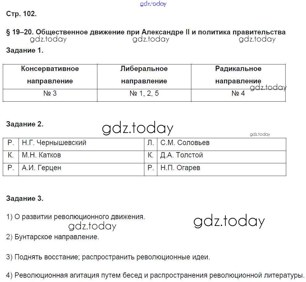 На страницах сайта gdz.today вы найдете учебный и вспомогательный материал, направленный на улучшения знаний школьной программы. ГДЗ - онлайн мир знаний Решение к части 1. Страницы 102 Рабочей тетради по Истории России для 9 класса Чернова Экзамен УМК 2017