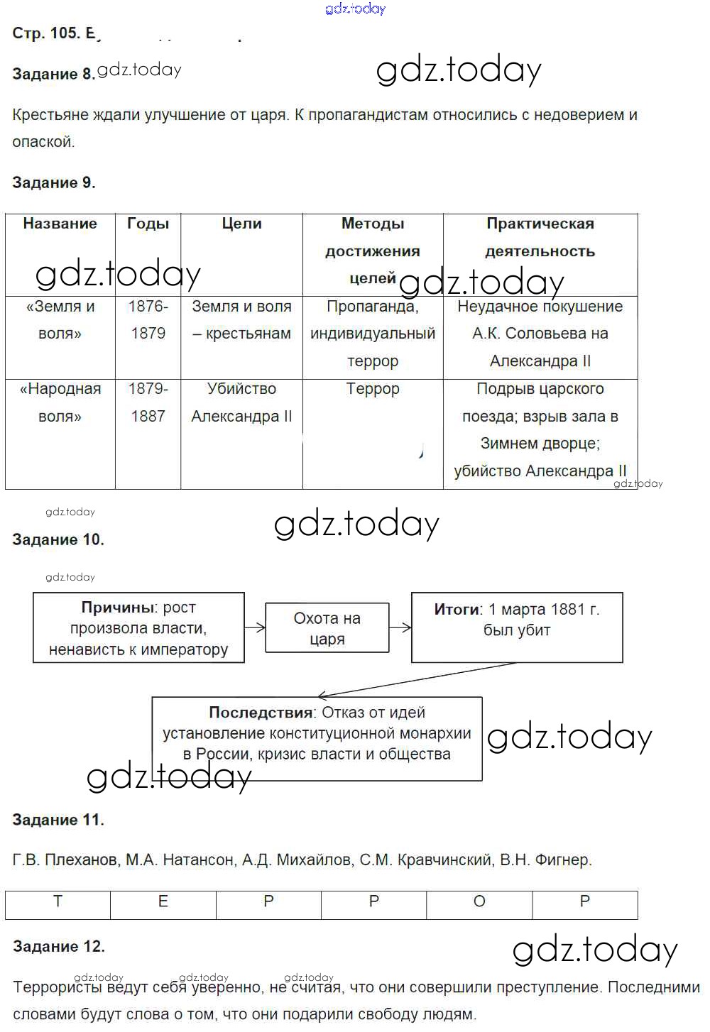 На страницах сайта gdz.today вы найдете учебный и вспомогательный материал, направленный на улучшения знаний школьной программы. ГДЗ - онлайн мир знаний Решение к части 1. Страницы 105 Рабочей тетради по Истории России для 9 класса Чернова Экзамен УМК 2017
