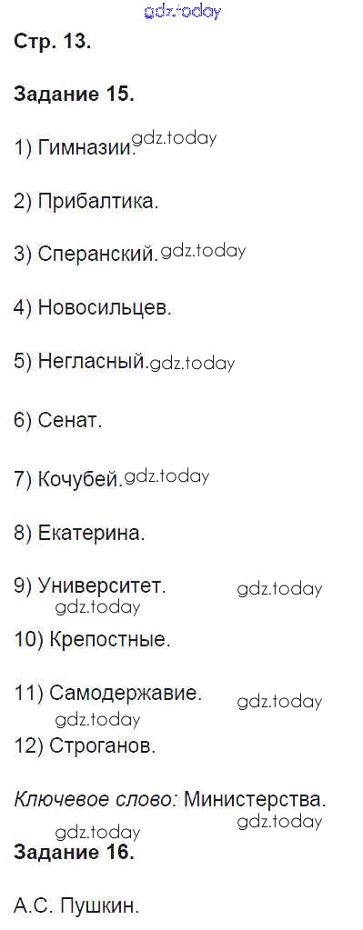 На страницах сайта gdz.today вы найдете учебный и вспомогательный материал, направленный на улучшения знаний школьной программы. ГДЗ - онлайн мир знаний Решение к части 1. Страницы 13 Рабочей тетради по Истории России для 9 класса Чернова Экзамен УМК 2017