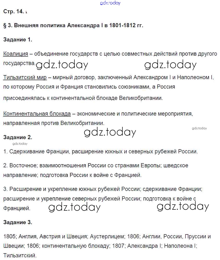 На страницах сайта gdz.today вы найдете учебный и вспомогательный материал, направленный на улучшения знаний школьной программы. ГДЗ - онлайн мир знаний Решение к части 1. Страницы 14 Рабочей тетради по Истории России для 9 класса Чернова Экзамен УМК 2017