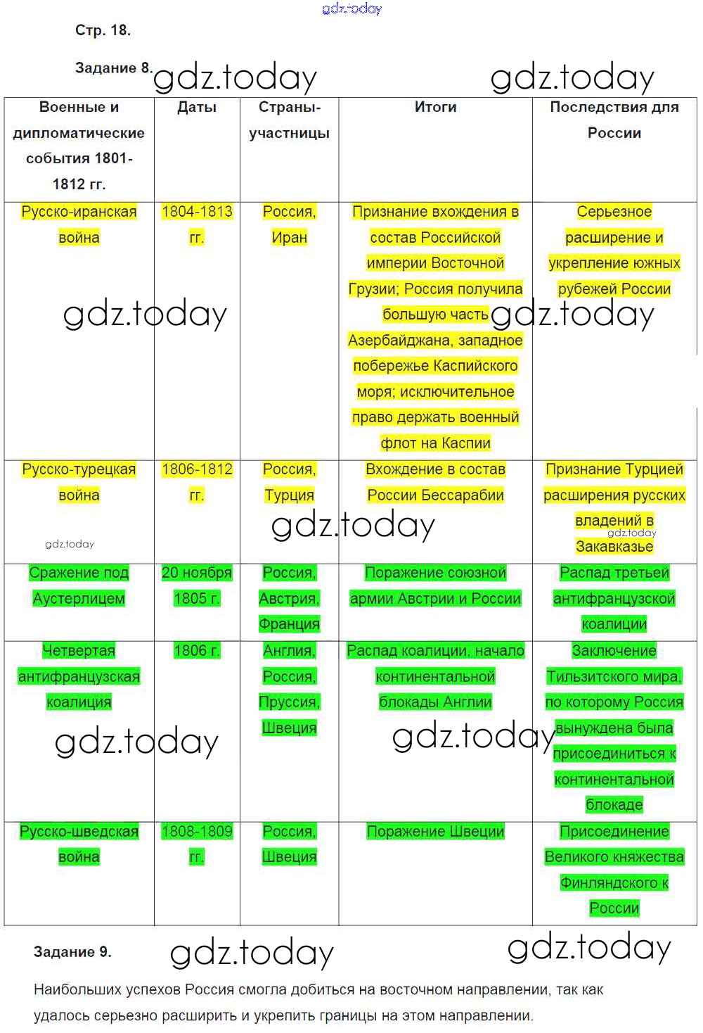 На страницах сайта gdz.today вы найдете учебный и вспомогательный материал, направленный на улучшения знаний школьной программы. ГДЗ - онлайн мир знаний Решение к части 1. Страницы 18 Рабочей тетради по Истории России для 9 класса Чернова Экзамен УМК 2017