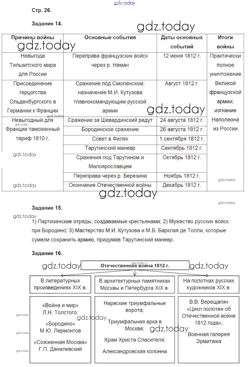На страницах сайта gdz.today вы найдете учебный и вспомогательный материал, направленный на улучшения знаний школьной программы. ГДЗ - онлайн мир знаний Решение к части 1. Страницы 26 Рабочей тетради по Истории России для 9 класса Чернова Экзамен УМК 2017