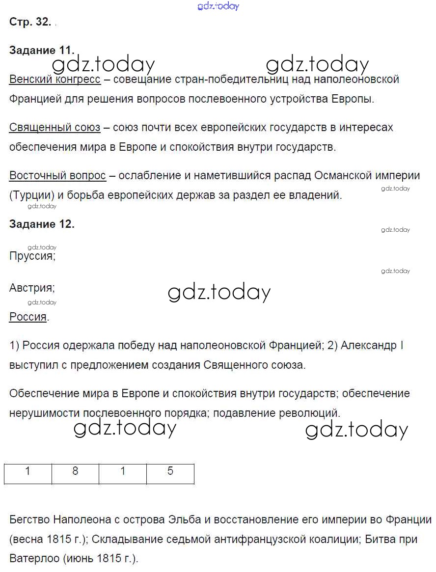 На страницах сайта gdz.today вы найдете учебный и вспомогательный материал, направленный на улучшения знаний школьной программы. ГДЗ - онлайн мир знаний Решение к части 1. Страницы 32 Рабочей тетради по Истории России для 9 класса Чернова Экзамен УМК 2017