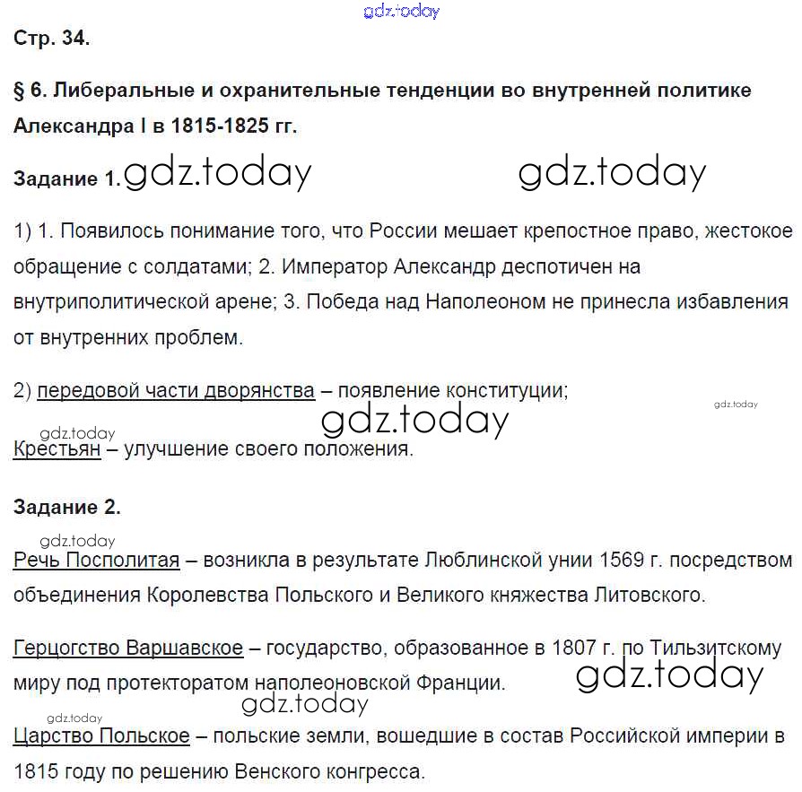 На страницах сайта gdz.today вы найдете учебный и вспомогательный материал, направленный на улучшения знаний школьной программы. ГДЗ - онлайн мир знаний Решение к части 1. Страницы 34 Рабочей тетради по Истории России для 9 класса Чернова Экзамен УМК 2017