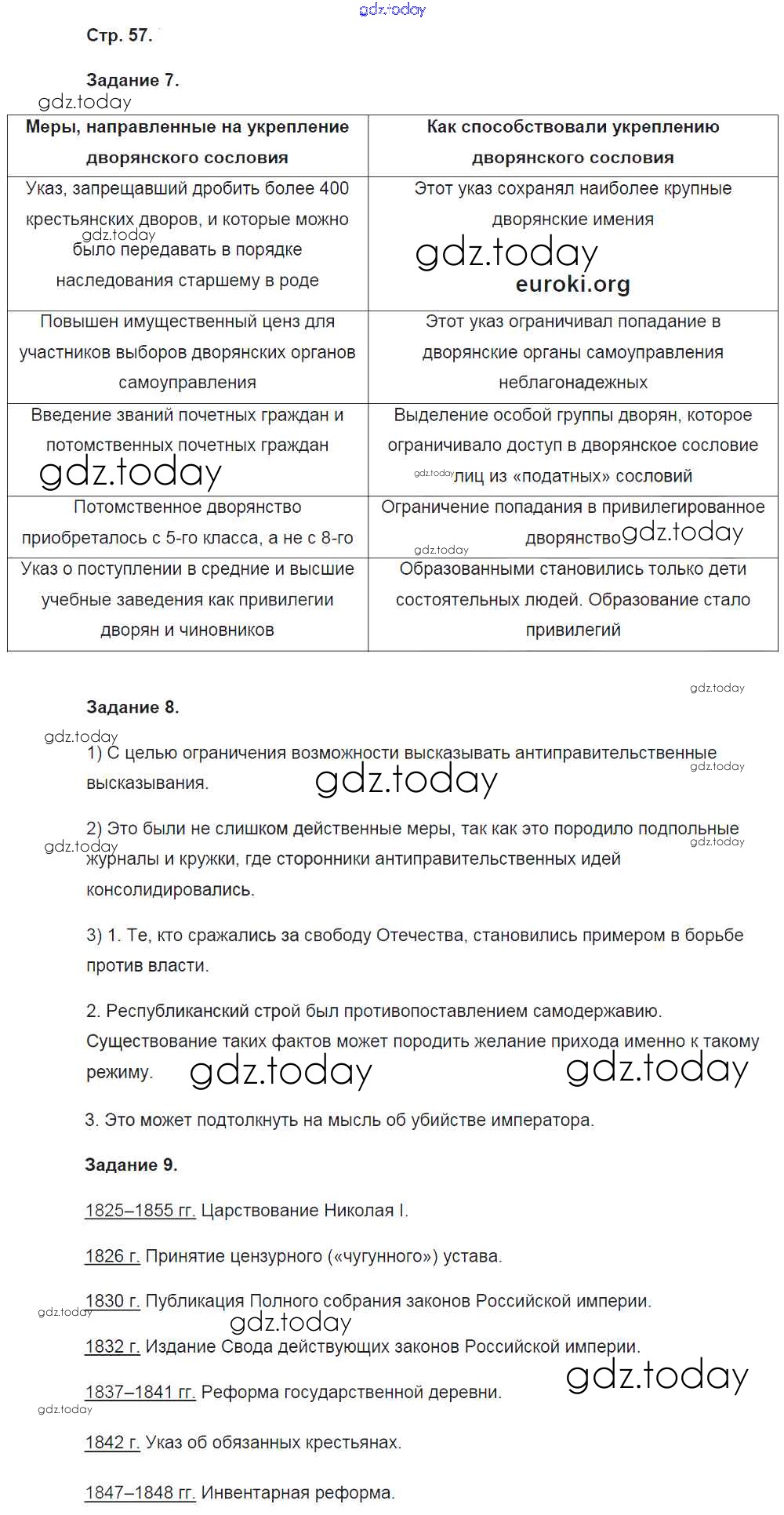 На страницах сайта gdz.today вы найдете учебный и вспомогательный материал, направленный на улучшения знаний школьной программы. ГДЗ - онлайн мир знаний Решение к части 1. Страницы 57 Рабочей тетради по Истории России для 9 класса Чернова Экзамен УМК 2017