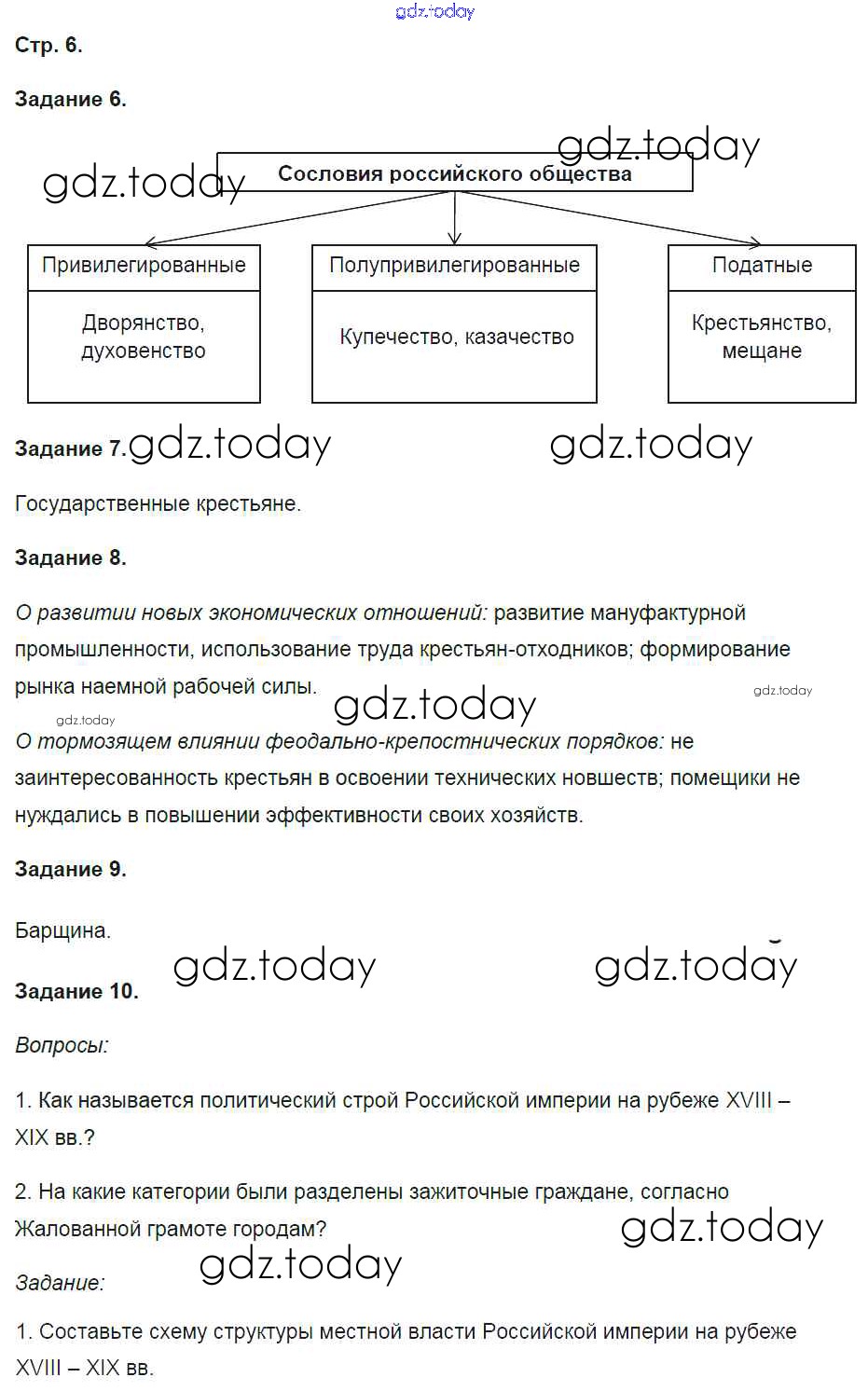 На страницах сайта gdz.today вы найдете учебный и вспомогательный материал, направленный на улучшения знаний школьной программы. ГДЗ - онлайн мир знаний Решение к части 1. Страницы 6 Рабочей тетради по Истории России для 9 класса Чернова Экзамен УМК 2017