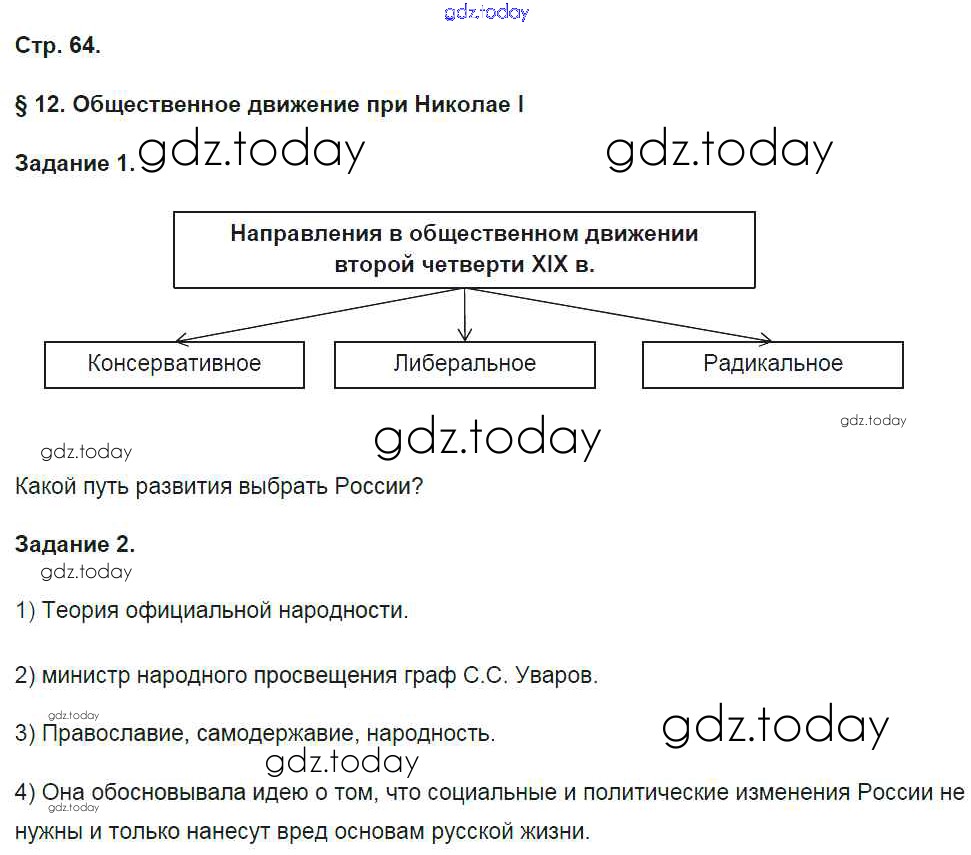 На страницах сайта gdz.today вы найдете учебный и вспомогательный материал, направленный на улучшения знаний школьной программы. ГДЗ - онлайн мир знаний Решение к части 1. Страницы 64 Рабочей тетради по Истории России для 9 класса Чернова Экзамен УМК 2017
