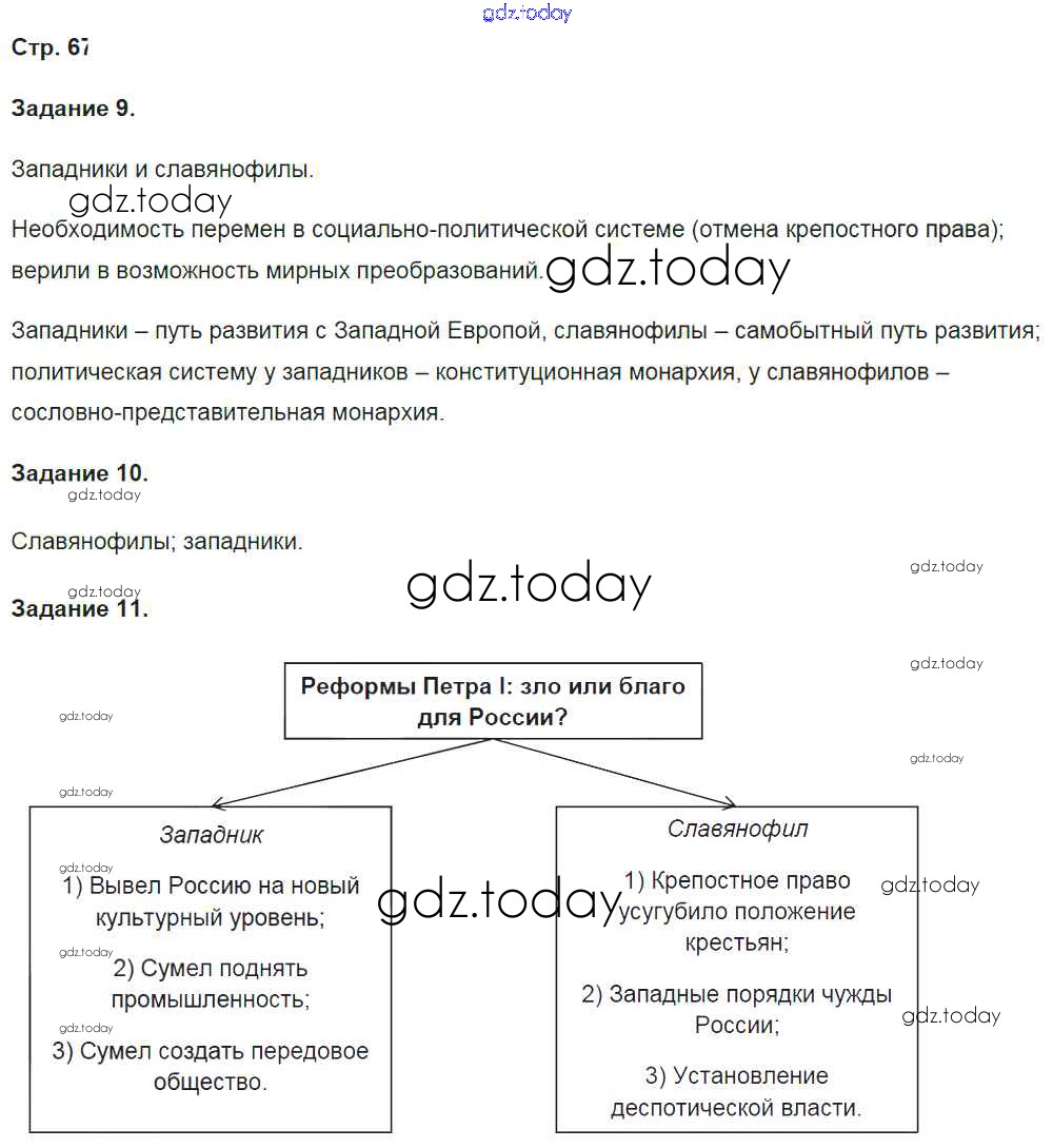 На страницах сайта gdz.today вы найдете учебный и вспомогательный материал, направленный на улучшения знаний школьной программы. ГДЗ - онлайн мир знаний Решение к части 1. Страницы 67 Рабочей тетради по Истории России для 9 класса Чернова Экзамен УМК 2017
