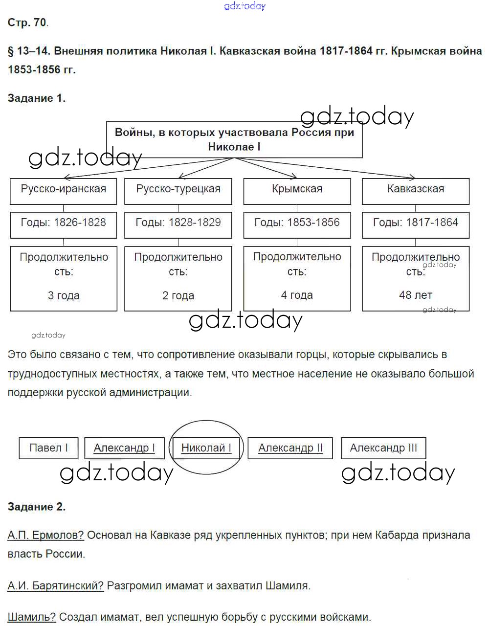 На страницах сайта gdz.today вы найдете учебный и вспомогательный материал, направленный на улучшения знаний школьной программы. ГДЗ - онлайн мир знаний Решение к части 1. Страницы 70 Рабочей тетради по Истории России для 9 класса Чернова Экзамен УМК 2017