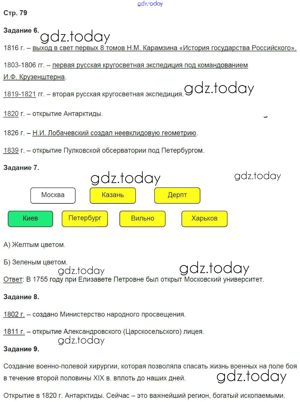 На страницах сайта gdz.today вы найдете учебный и вспомогательный материал, направленный на улучшения знаний школьной программы. ГДЗ - онлайн мир знаний Решение к части 1. Страницы 79 Рабочей тетради по Истории России для 9 класса Чернова Экзамен УМК 2017