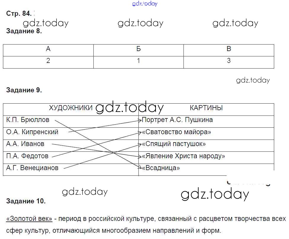 На страницах сайта gdz.today вы найдете учебный и вспомогательный материал, направленный на улучшения знаний школьной программы. ГДЗ - онлайн мир знаний Решение к части 1. Страницы 84 Рабочей тетради по Истории России для 9 класса Чернова Экзамен УМК 2017
