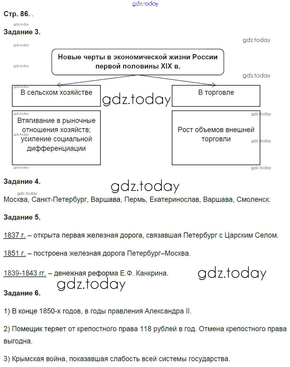 На страницах сайта gdz.today вы найдете учебный и вспомогательный материал, направленный на улучшения знаний школьной программы. ГДЗ - онлайн мир знаний Решение к части 1. Страницы 86 Рабочей тетради по Истории России для 9 класса Чернова Экзамен УМК 2017